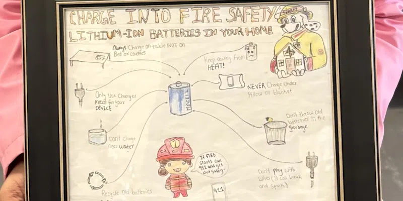 Moshika Vaithiyanathan attends Mary Queen of the World in Mount Pearl and won the honour with her Charge into Fire Safety poster on lithium batteries.
